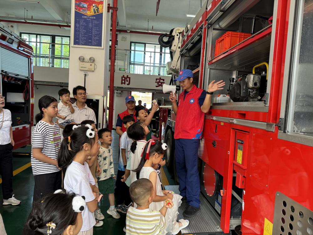 打开消防车的“百宝箱”,萌娃们好奇心大爆发——在消防员的讲解下,大家才知道随车不仅有消防器材,还有各类抢险、破拆、防护设备,并在零距离感受中进一步解锁了消防职业的硬核知识,把消防安全融入心中。