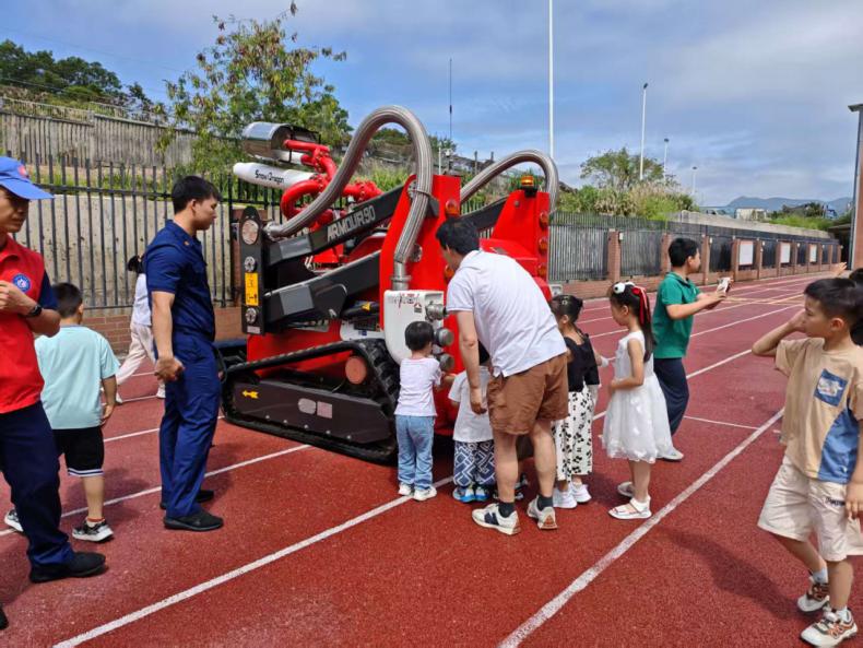 最激动人心的环节当属智能消防机器人和消火栓出水实践,将水带连接消火栓,在消防员指导下操控水枪喷出水柱,孩子们一起抬起水带,现场欢呼声不断。“原来灭火需要这么多技巧,消防员叔叔真了不起!”一名参与体验的萌娃感慨道。